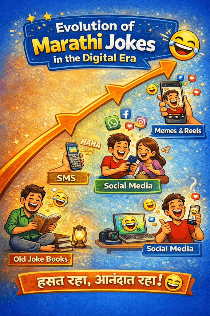 Marathi jokes Humor is deeply rooted in Maharashtra’s cultural identity. Marathi jokes reflect everyday life, relationships, politics, education, and social observations in a lighthearted yet meaningful way. Traditionally, humor was shared through storytelling, theatre, and stage performances. Today, it has found a new home on digital platforms like WhatsApp, Facebook, and Instagram.